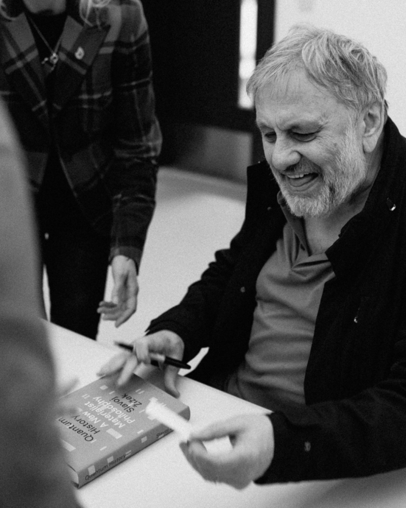 Someone from the audience asked if simulation theory could explain the weirdness. Žižek’s response was characteristically contrarian: he suspects simulation theories precisely because they offer an escape from truth, and for him, truth always returns, you cannot escape it.